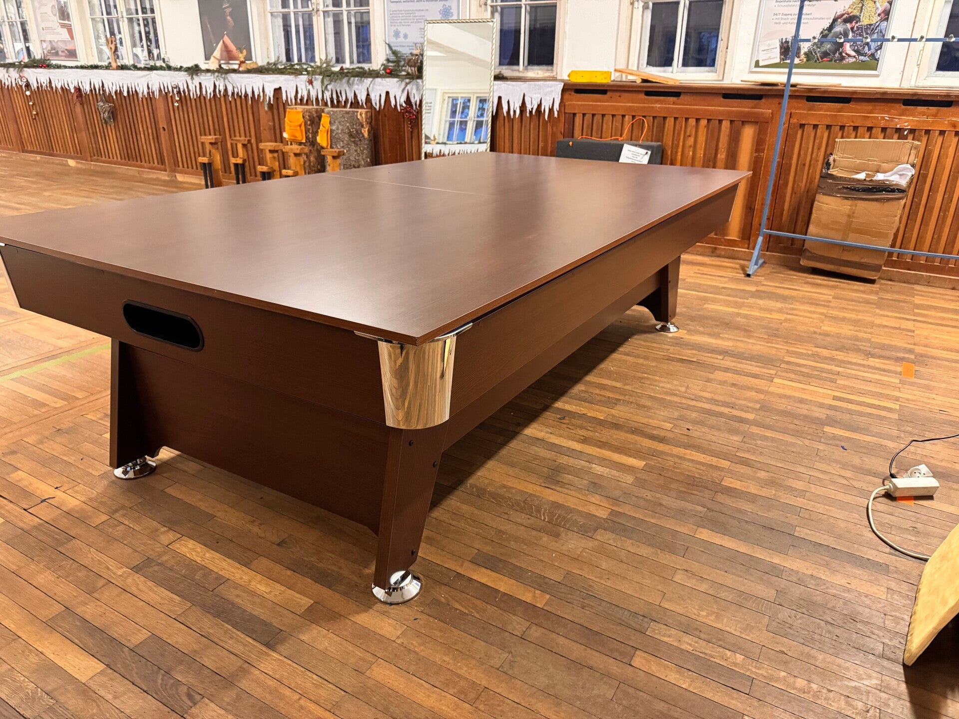 Bitte wählen Sie die Abdeckplatte passend zur Tischfarbe aus. Die Abdeckplatten sind wahlweise einseitig als Esstisch und auf der anderen Seite als Tischtennisplatte nutzbar (siehe Bilder) oder ausschließlich als Esstisch erhältlich. Zubehör wie Netz, Schläger und Bälle ist im Preis der Abdeckplatte inbegriffen. Falls keine Auswahl erfolgt, geben Sie uns Ihre Wünsche bitte per E-Mail an info@vegabillard.com bekannt.